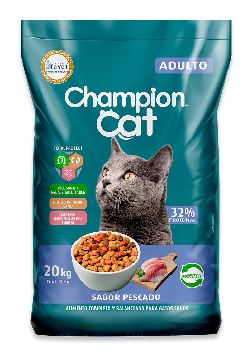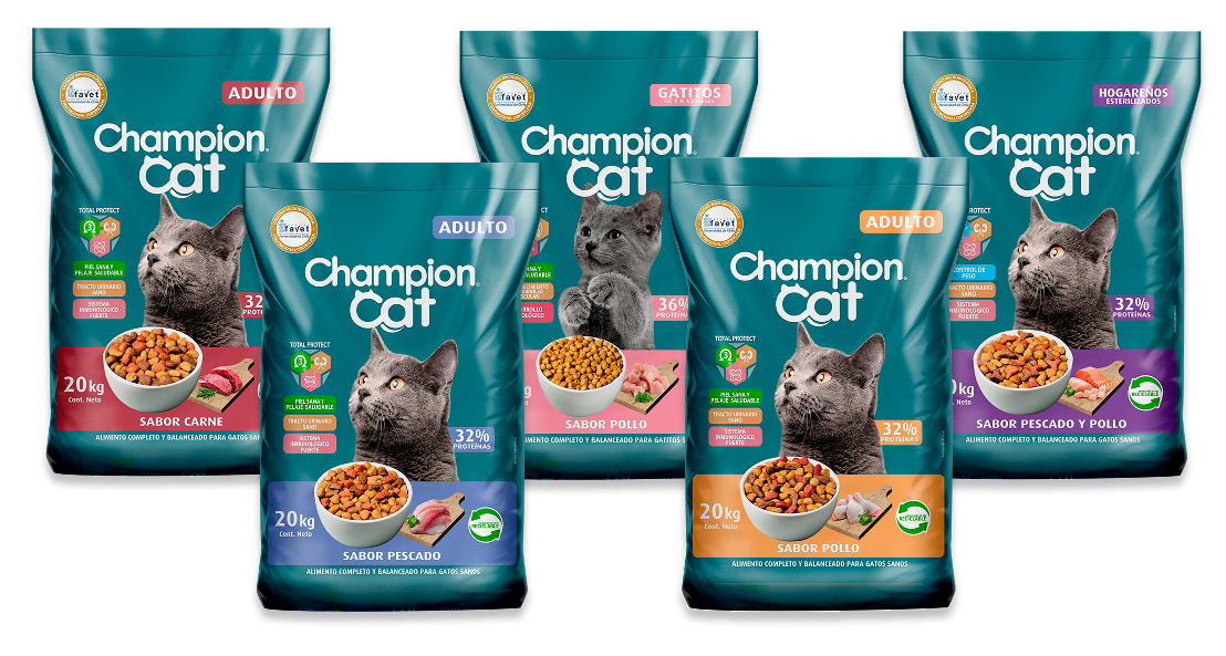 Los alimentos Champion Dog y Champion Cat cuentan con la certificación de la Facultad de Ciencias Veterinarias y Pecuarias de la Universidad de Chile (FAVET), un organismo independiente, experto y confiable.